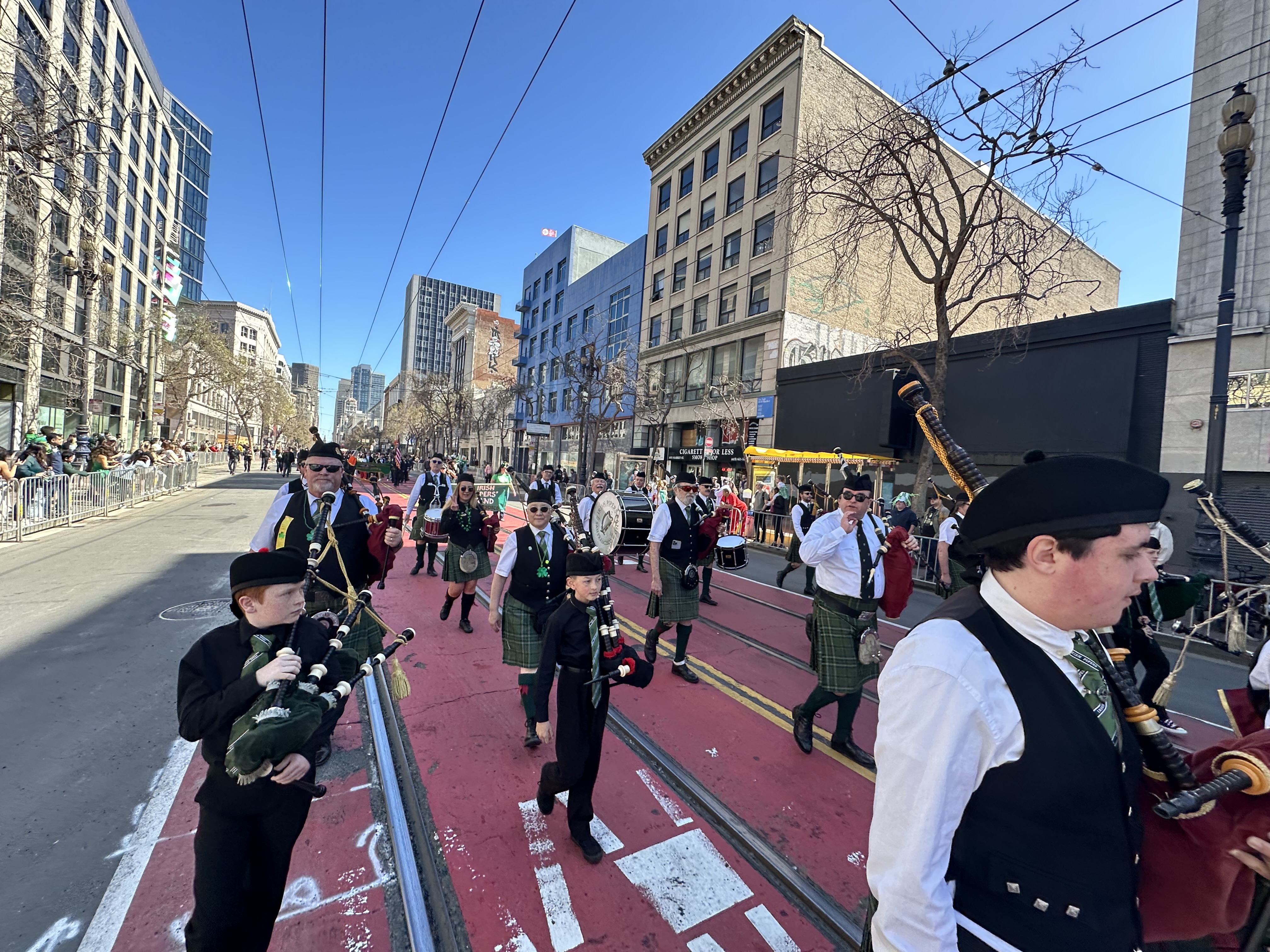 The Irish Pipers Band of San Francisco was formed in 1932 and is the oldest continuously active Irish pipe band west of the Mississippi River. The band performs at numerous public and private events in the San Francisco Bay Area and regularly competes in pipe band competitions throughout Northern and Southern California. The band wears the County Wexford tartan and practices on Monday evenings at the United Irish Cultural Center in San Francisco.
